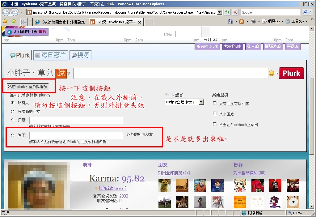 .噗浪禁閱對象外掛-Plurk to Except Friends.